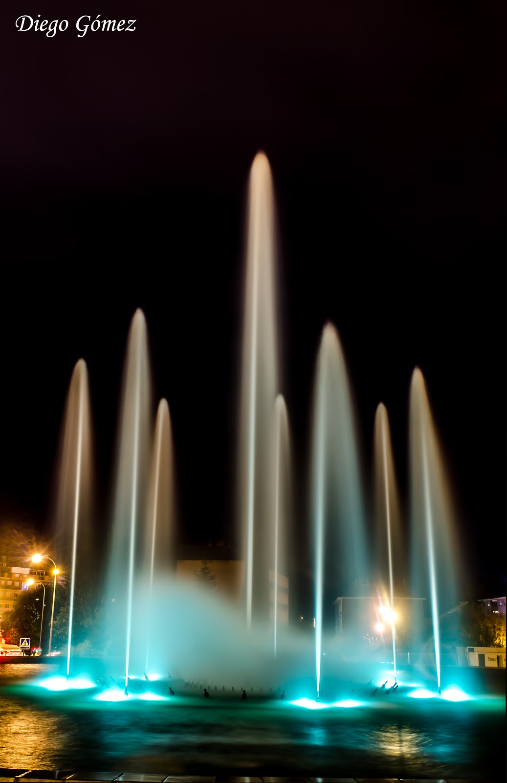 Continuamente cambiaban los colores de los focos de la fuente, saqué fotos con una gran variedad de tonos, pero me quedo con éste.