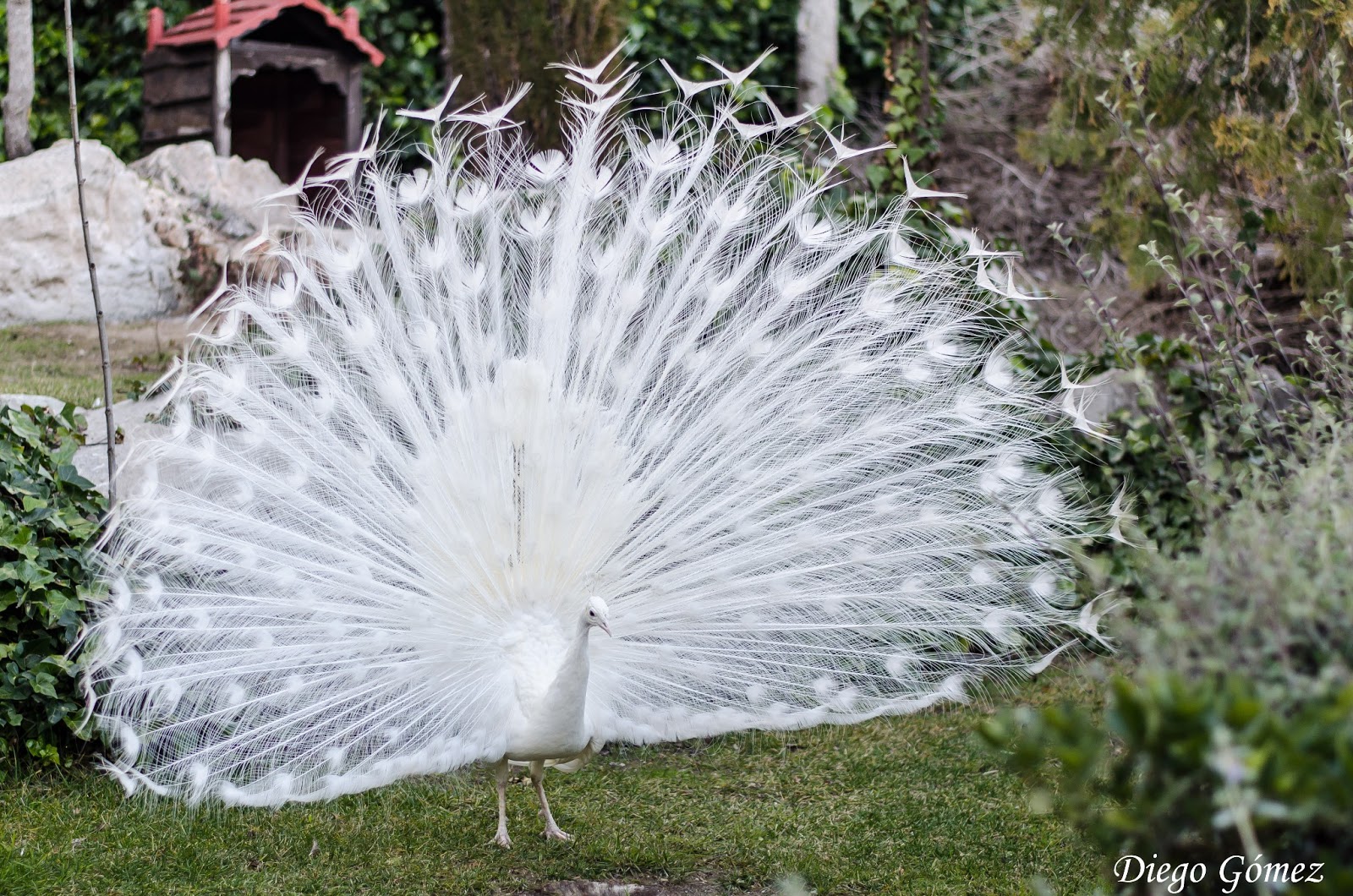 Podemos ver como este Pavo Real nos deleita con su plumaje extendido, una autentica maravilla cuando ves cómo lo abre y se mueve…