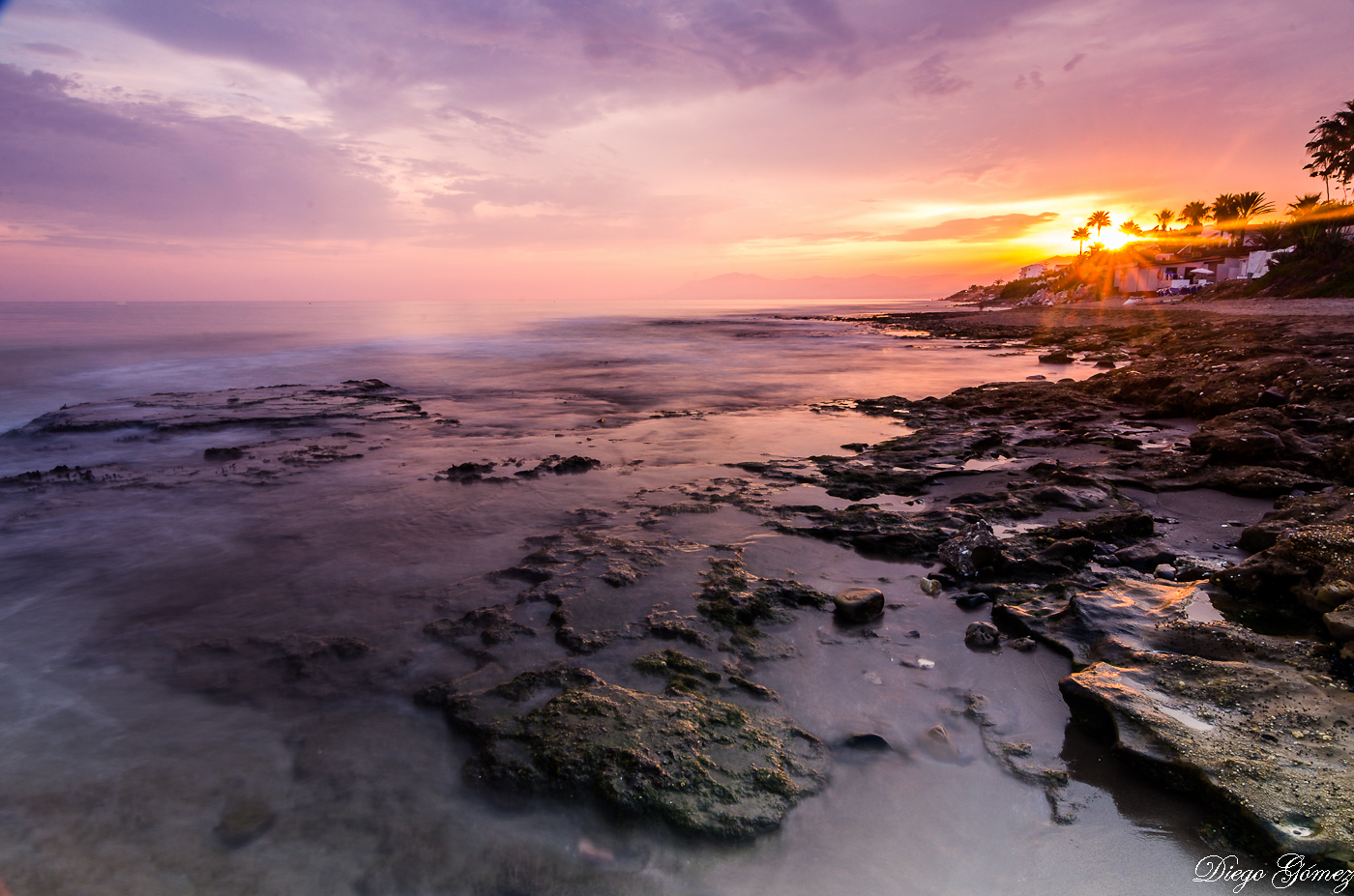 Un rayo de sol, de los últimos del día ilumina este paisaje costero, esta playa andaluza creando estos colores mágicos.